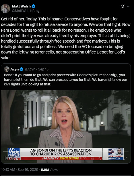 Conservative influencers and others online expressed their displeasure with Bondi.